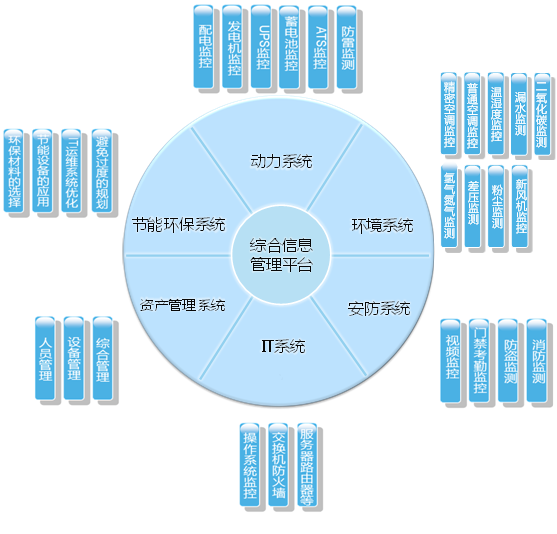基于这些市场需求,计通公司为数据中心提供一个全方位的综合信息管理平台。该平台是集动力监控系统、环境监控系统、安防监控系统、IT综合管理系统、资产管理系统、环保节能系统等于一体的综合管理平台。该平台解决了目前数据中心普遍存在的机房设备数量多、设备分布散、专业人才不足等问题,大大缩短了故障定位、故障排障时间,达到了快速定位设备报警位置,第一时间给出报警原因和解决方法,为IT系统稳定运行提供了最大保障,并为用户提供了最专业的设备维护管理功能,帮助用户建立全面的设备维护管理系统,减轻维护人员负担的同时,也实现了集中实时的监控、全面统一的管理,有效保障数据中心高效、节能、安全、可靠的运行。
